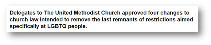 3. umnews.org: United Methodists remove same-sex wedding ban